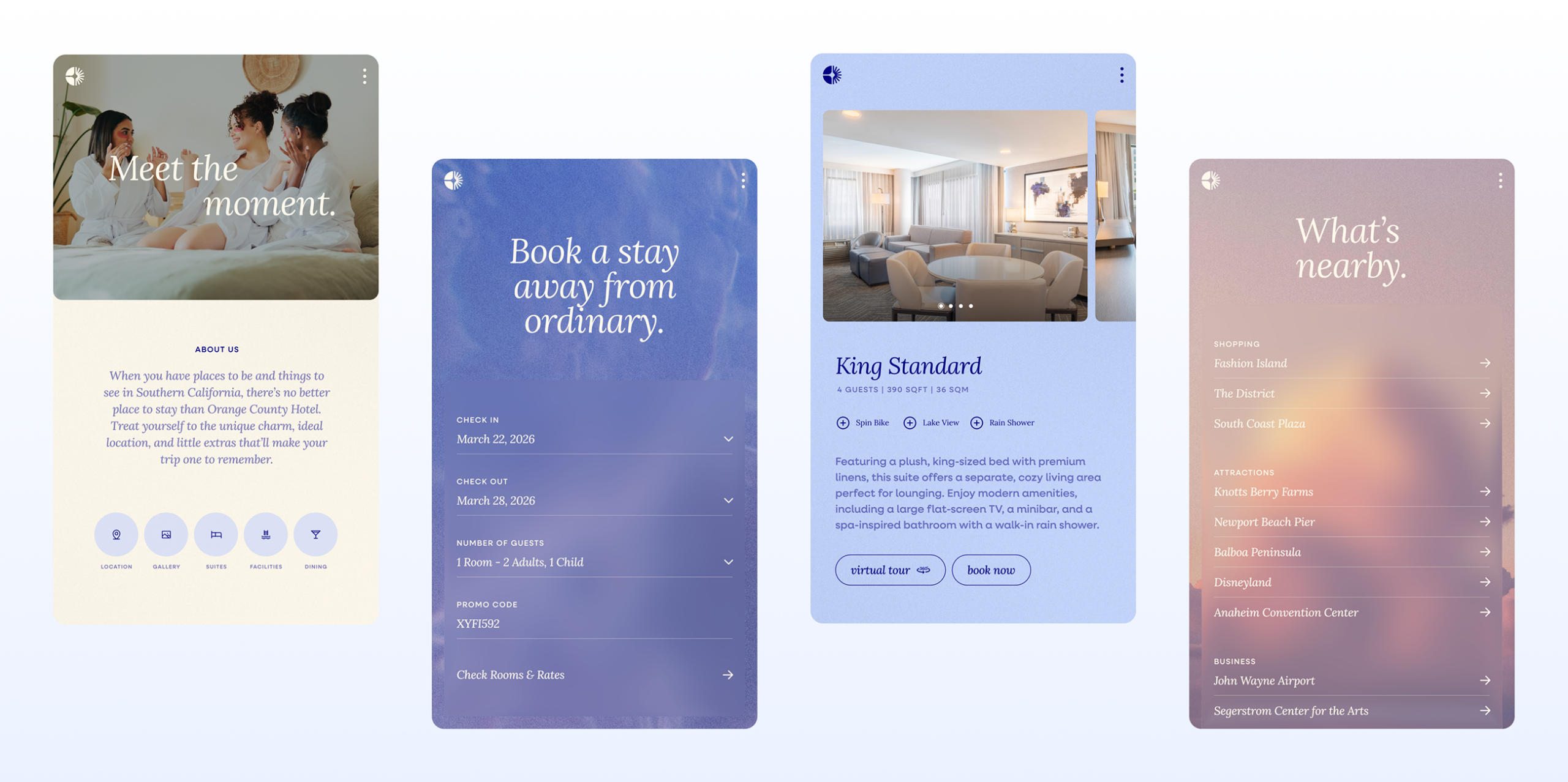 Orange County Hotel also needed a website that could grow with them as they continually added to their identity. Knowing professional photography was going to be an ongoing effort, we focused on key visuals where needed, then filled out the site with textures and subtle imagery that was quintessentially southern California. A mobile first, super friendly design enabled the hotel to start booking guests quickly and efficiently.